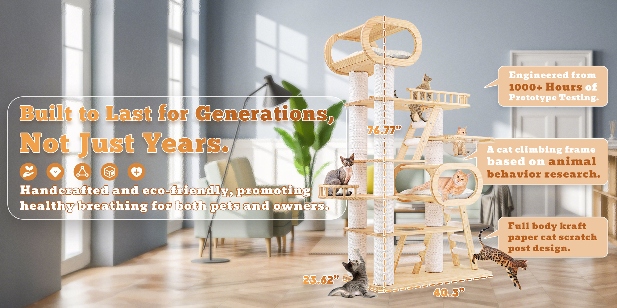 76.7 H Large Solid Wood Cat Tree