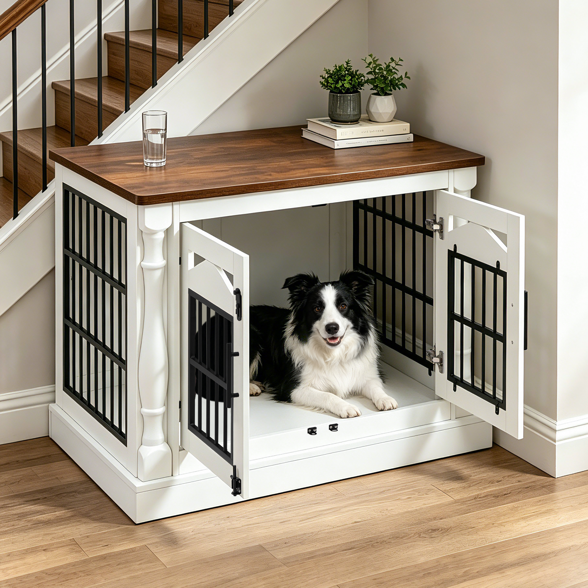 Made with high-quality materials, this furniture-style dog crate is designed for medium to large pets, while the grid design makes it suitable for small pets as well. The sides feature a breathable mesh design and are equipped with two lockable doors for easy access. Additionally, it comes with handles for added convenience. Simply add a soft cushion to create a cozy little haven for your beloved pet.
