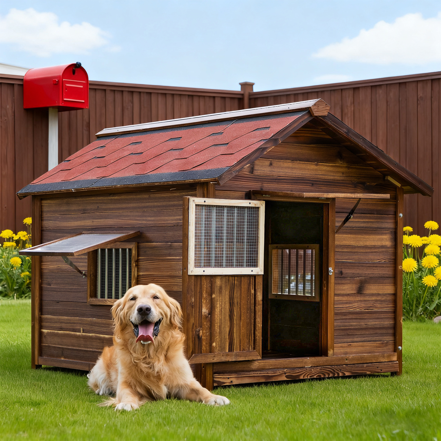 Stable and Durable: The wooden dog house is made of all pine wood construction, which is of Sturdy Quality, Environmentally Friendly and Strong Practicality. And it is suitable for all seasons.