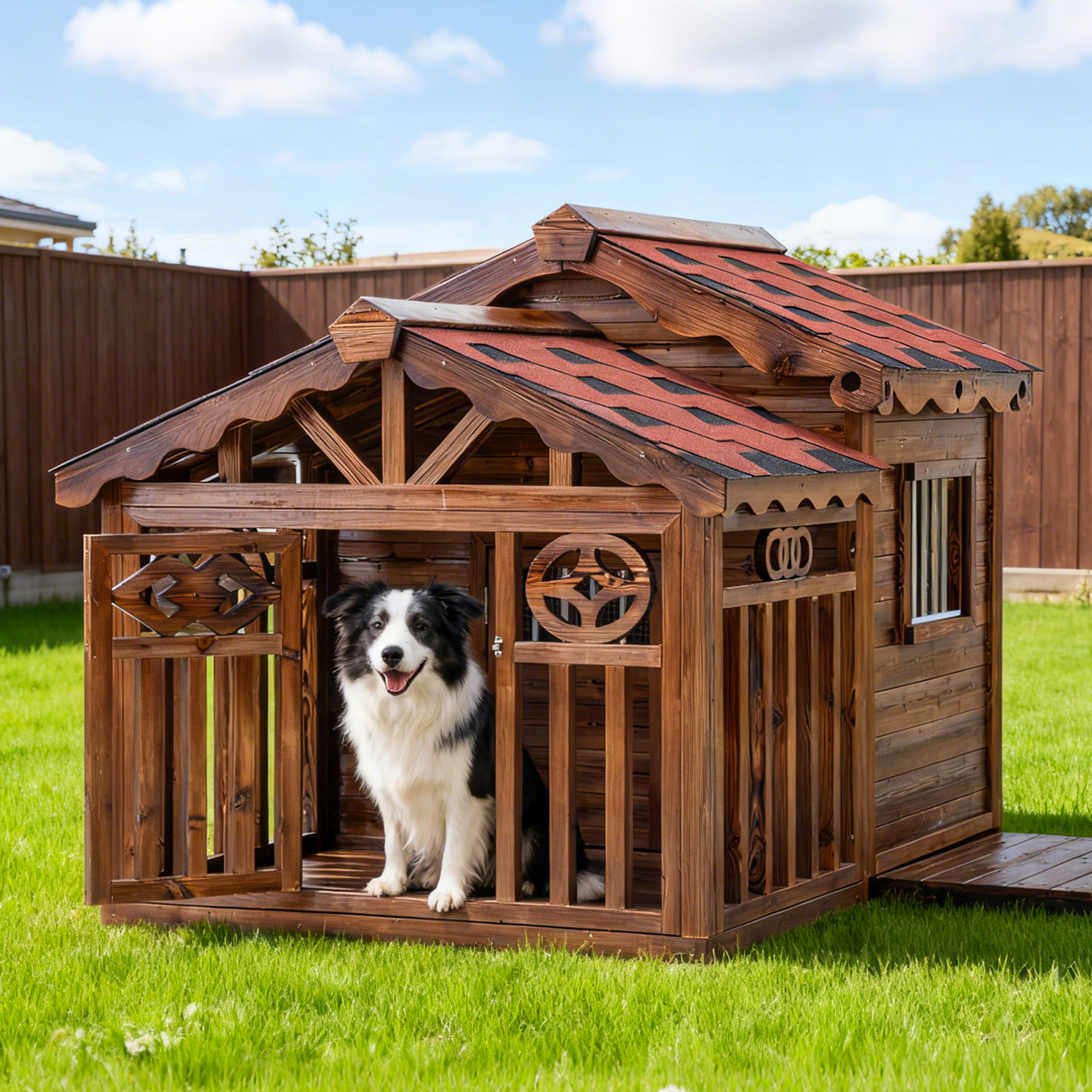Stable and Durable: The wooden dog house is made of all pine wood construction, which is of Sturdy Quality, Environmentally Friendly and Strong Practicality. And it is suitable for all seasons.